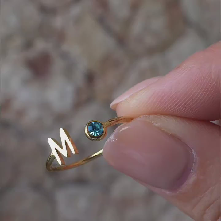 Ontdek de CELINE RING - jouw persoonlijke touch in goud of zilver. Kies een letter en match deze met een sprankelende geboortesteen. Simpel, elegant, perfect voor elke dag.